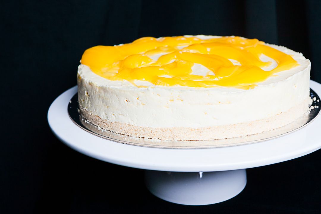 Creamy vanilla cheesecake that’s both tart and sweet topped with lemon curd pulp.