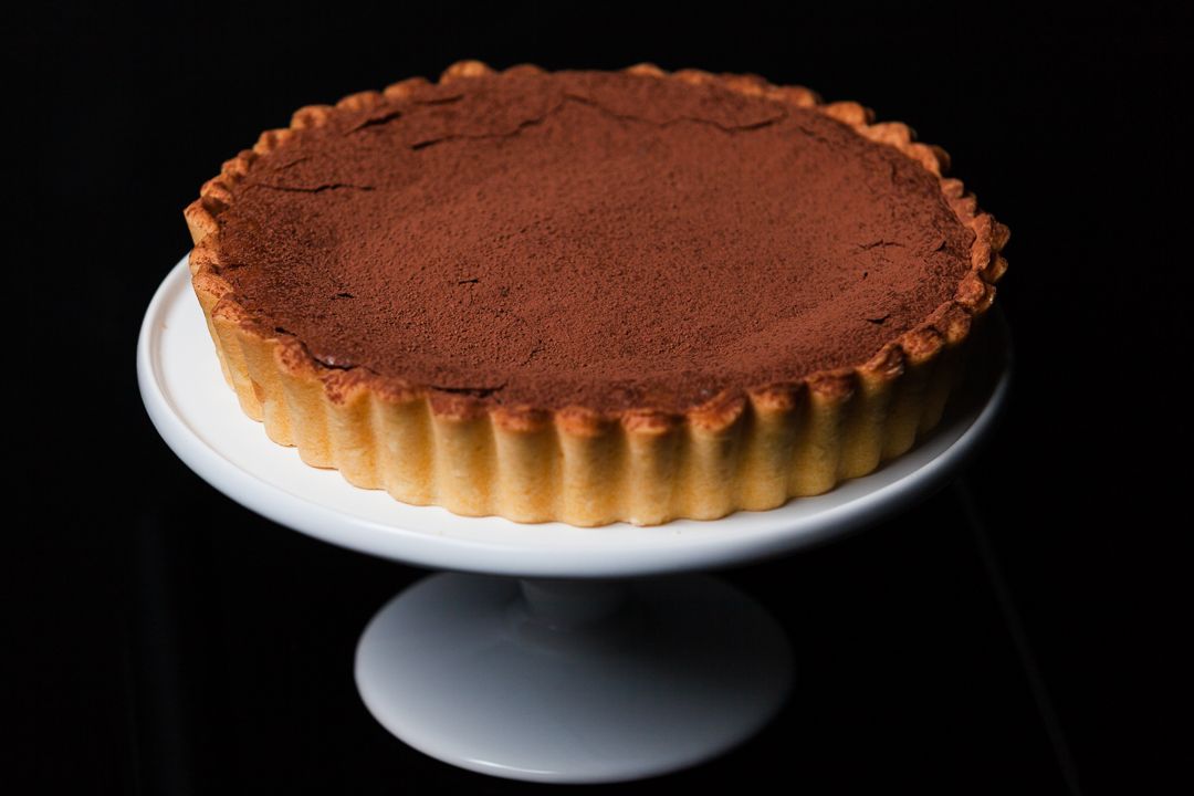 Baked in a sweet pastry crust this most velvety rich chocolate filling you will ever taste. It needs very little else, but a light dusting of the finest cocoa.